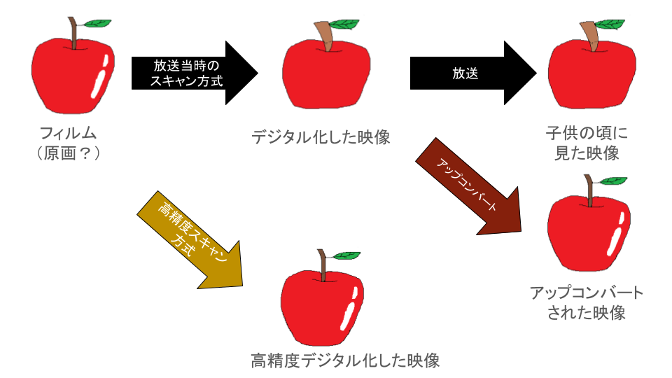 高精度スキャン方式では原画が元になっていますが、アップコンバート方式では読み込んだ後の映像を元にするイメージなんですよね。