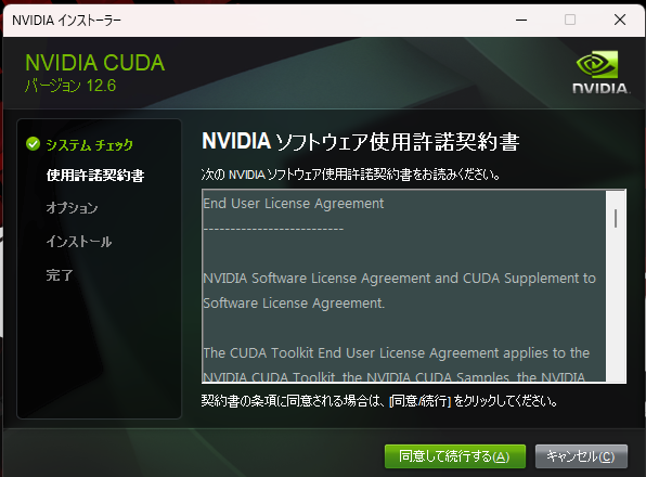 Nvidia Driverは入っているので、WindowsでCUDAを使うためのCUDA Toolkitをサイトからインストール。