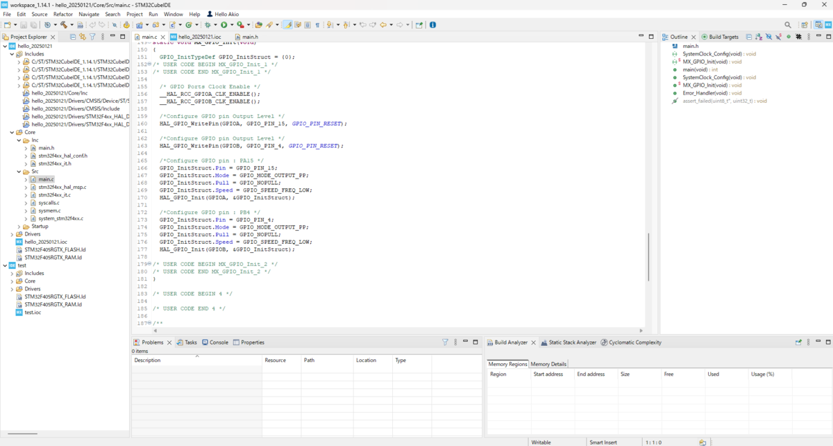本記事ではSTM32CubeIDEを用いたLチカは行いませんが、一応、自分が覚えている範囲で使い方の説明を。